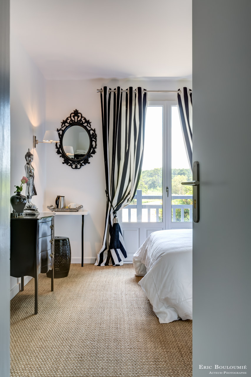 - Post-production : une fois la préparation et les prises de vue effectuées, vient la délicate étape de la retouche. L’objectif de cette dernière est de finaliser les photographies en respectant le site ! Pas question de supprimer un lampadaire extérieur, de changer une tapisserie ou de modifier un élément car c’est l’assurance de créer de l’insatisfaction et d’avoir des clients mécontents et déçus d’arriver dans un endroit différent des photographies qu’ils ont pu voir lors de leur réservation. L’objectif de la post-production est d’effectuer des assemblages de photographies afin de gérer les différents écarts de lumière (intérieur/extérieur), de corriger les perspectives et d’utiliser différentes autres techniques permettant de valoriser votre chambre d’hôte ou votre gîte sans mentir à vos futurs clients !