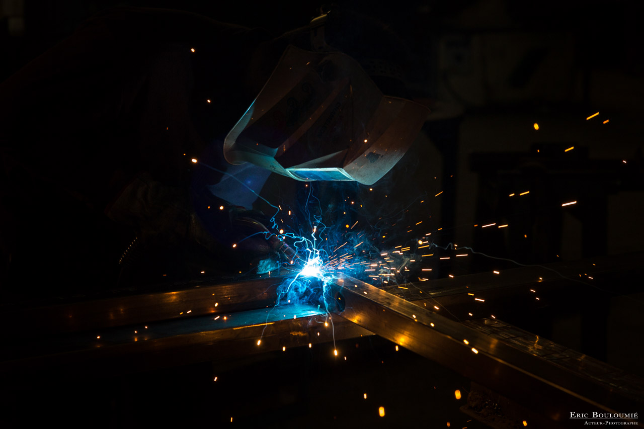 Lors de la prise de vue pendant ce reportage, j’ai de suite vu qu’il y avait quelques choses à faire avec les différents soudeurs présent dans cette entreprise. Une dizaine de clichés après, cette photographie est ressortie sans aucune question à se poser.